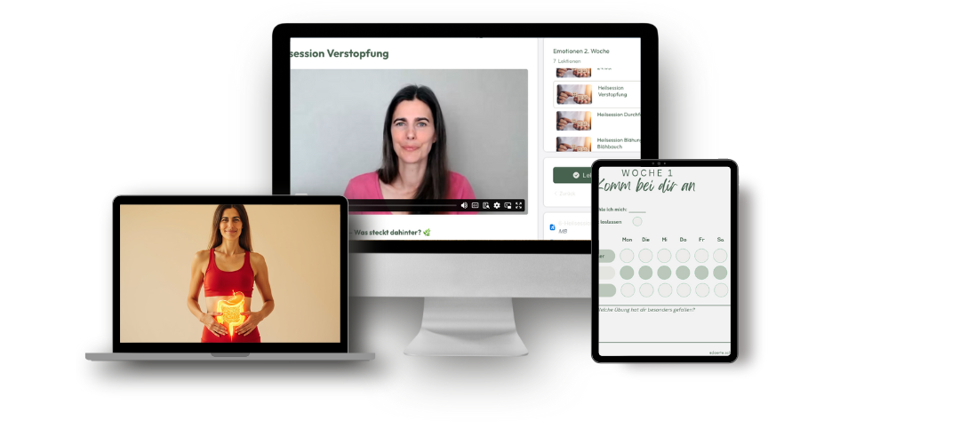 „Erlebe in nur 6 Wochen, wie du mit kleinen täglichen Wohlfühlroutinen Stress reduzierst, deinen Bauch entlastest und innere Ruhe spürst – ganz in deinem Tempo.“